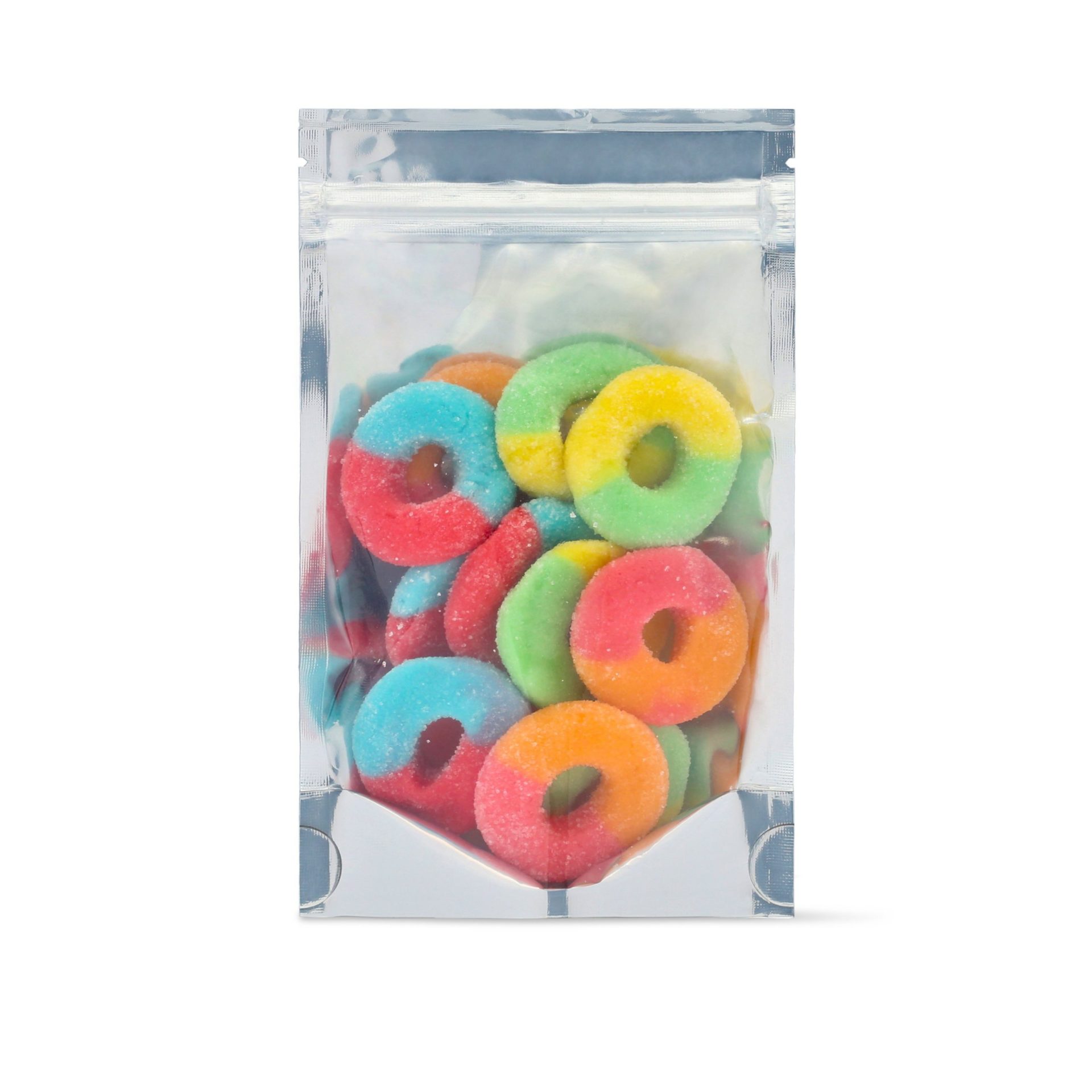 Each of our delicious Hemp-Derived Delta 8 Edible Rainbow Ring carries 20 milligrams of potent Delta 8 THC. Therefore, consuming an entire ring may be too intense for some users. We recommend that you begin using this product by first enjoying one-third of the ring. Depending on your physical composition and tolerance, the effects of the Delta 8 THC should be felt anywhere from 30 minutes to two hours after consumption. Wait for at least two hours, and if the desired effect is not achieved, consume another third of the Rainbow Ring. Increase your dosage in this way until you achieve your desired results.