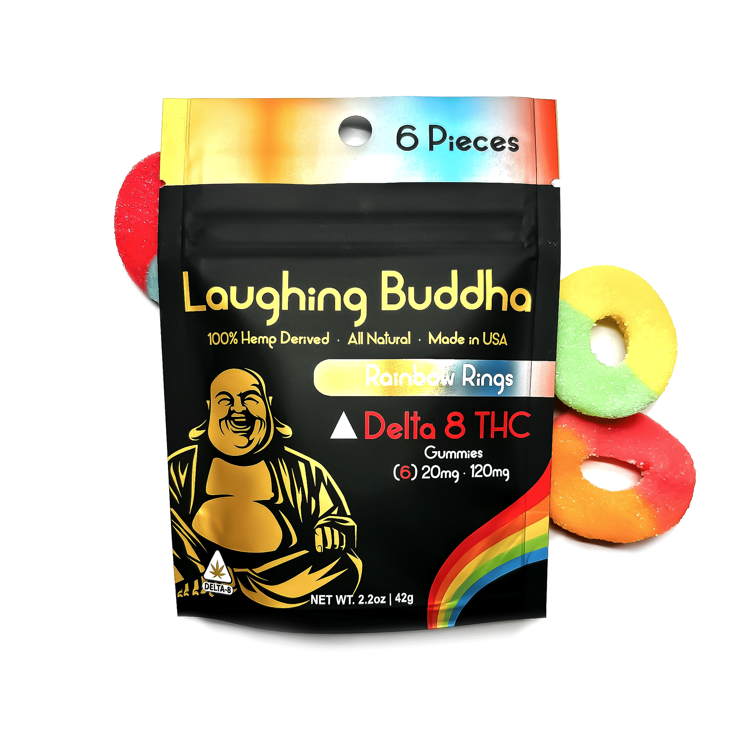 Delight in Fruity Euphoria with Laughing Buddha’s 6-Pack Rainbow Rings Delta-8 THC Edibles